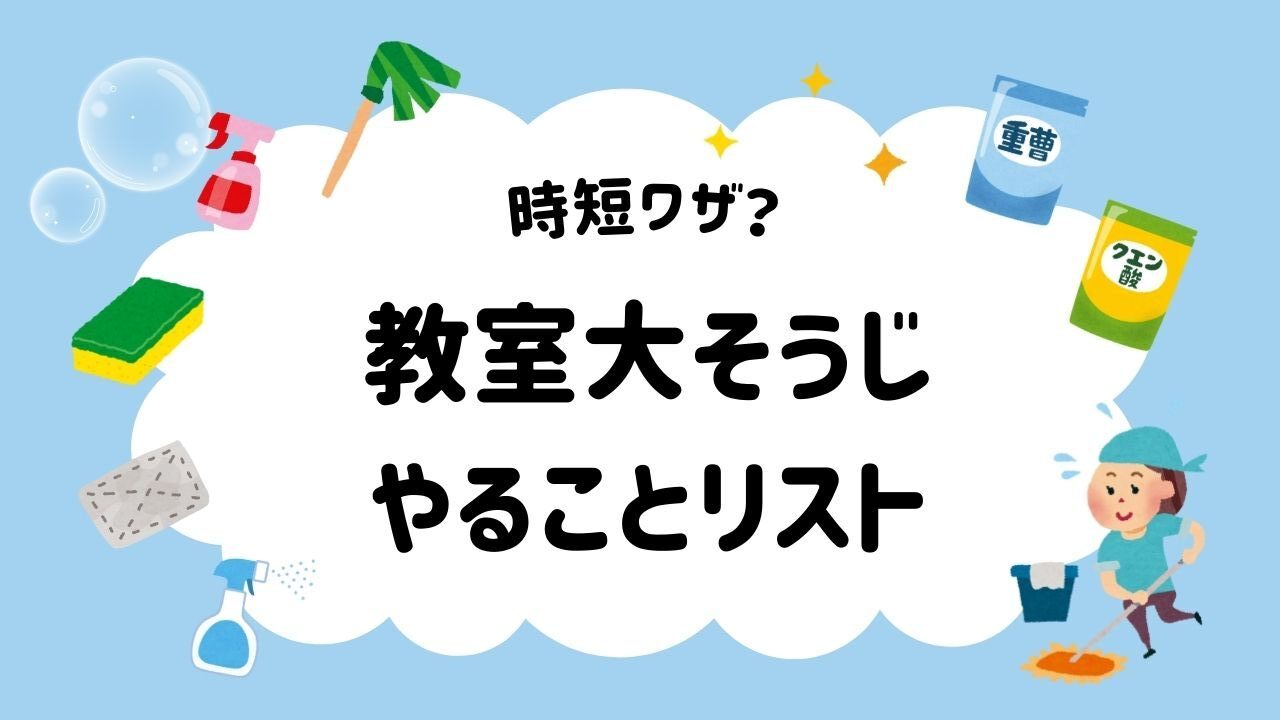 長期休み前や年度末の教室の大掃除、ただ時間を使って普段より念入りに掃除をするだけでは時間がもったいない!以前は自分でやるべきだと考えていたことも子どもたちの仕事にすることで、後から自分でする教室の片付けがうんと楽になり時間も確保できるようになりました。特に年度末は大掃除で子どもたちの手を借りてできることがたくさんあります。机や椅子の足に詰まったホコリ取り、床のほうきがけと雑巾がけ、窓ふき、黒板そうじ以外にやっている「大掃除やることリスト」を紹介します。